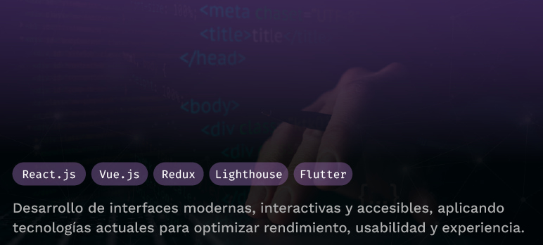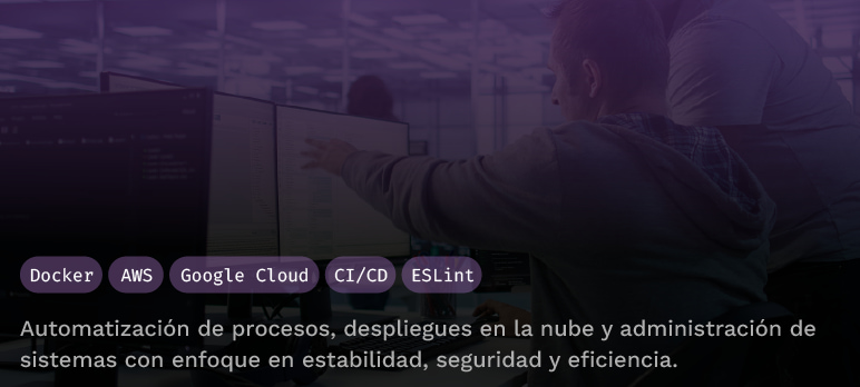 Desarrollo integral de soluciones digitales que abarcan interfaces interactivas, optimización del rendimiento, gestión de servidores, bases de datos y automatización de despliegues en la nube con prácticas seguras y eficientes.